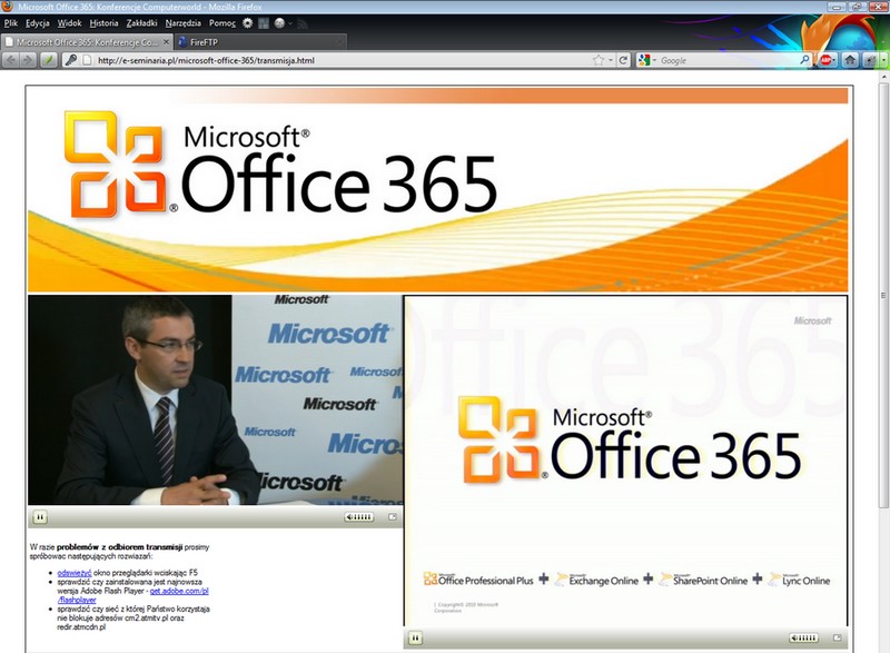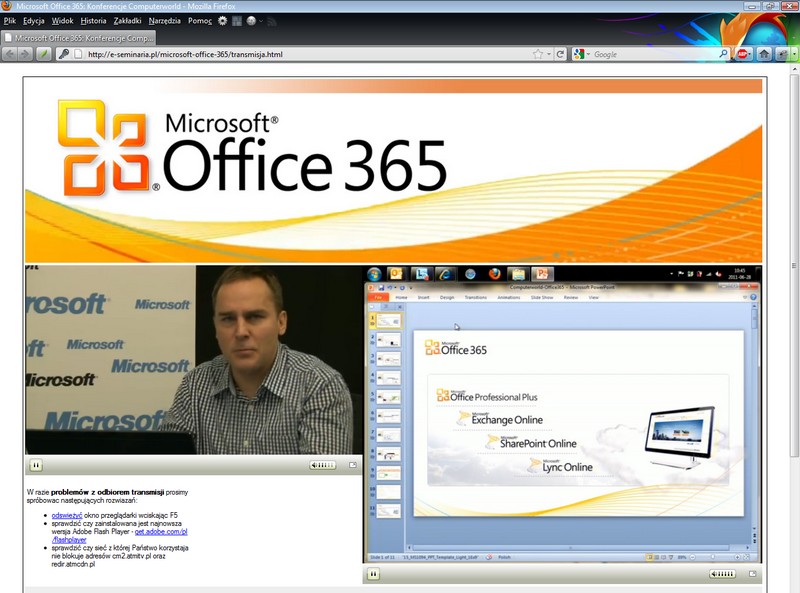W dniu 28.06.2011 r. na platformie e-seminaria.pl odbyło się eSeminarium: "Office 365 moc z chmury", którego transmisję rozpoczęto o godzinie 10:00 (koniec transmisja przewidziany był na godzinę 12:30).