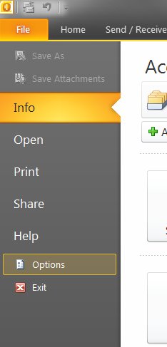 - z górnej wstążki wybierz pozycję "File" (Plik) > "Options" (Opcje)