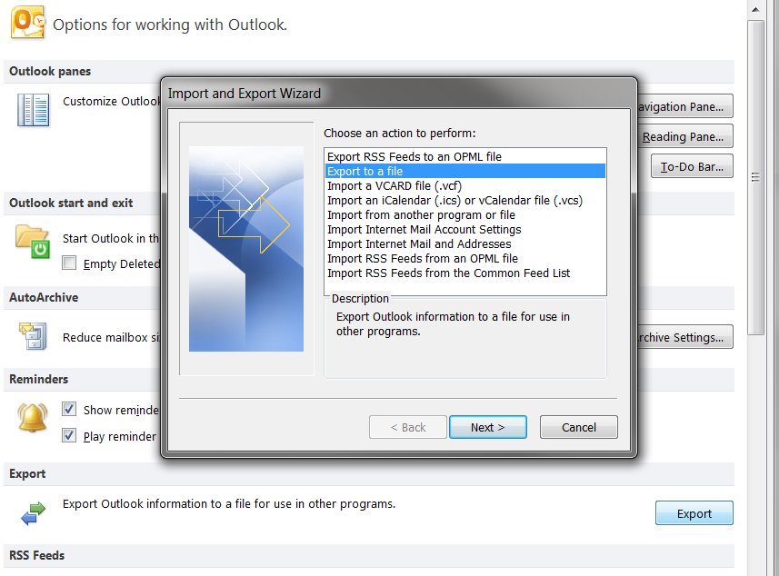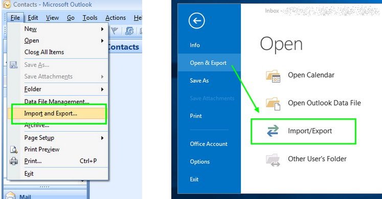 W Outlook 2007 należy wybrać: "File" (Plik) > "Import and Export" (Import i Eksport);