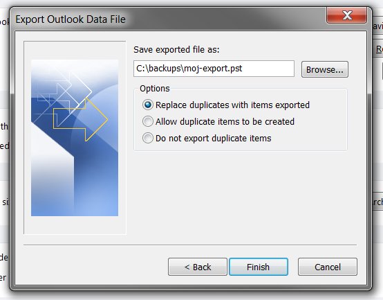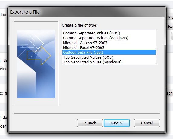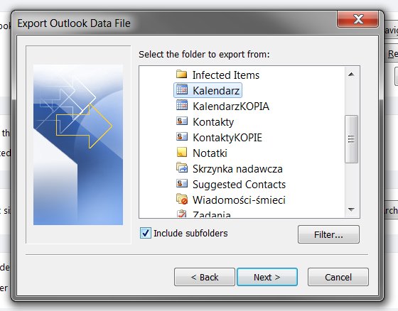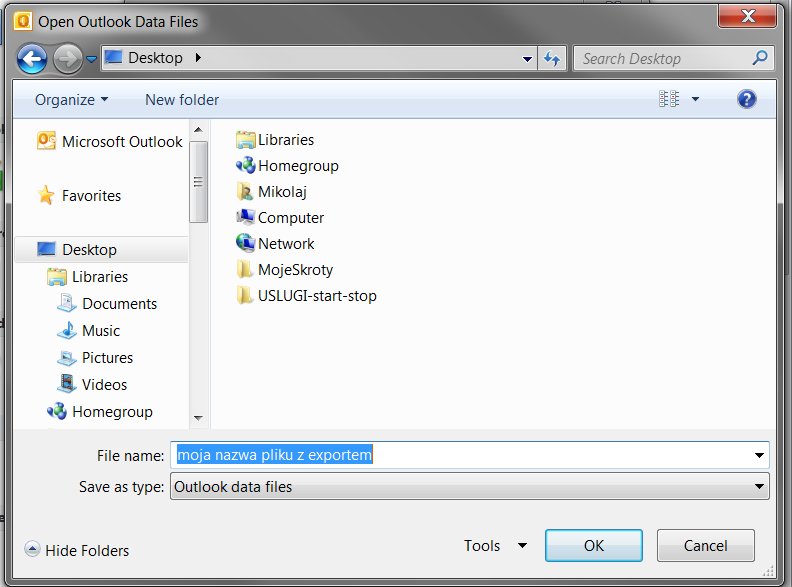 Dla pełnej zgodności (łatwości przywrócenia danych) zalecany jest format "Outlook Data File (.pst)" (Format danych Outlook).